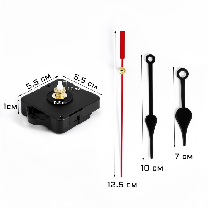 Часовой механизм со стрелками "Соломон-6", плавный ход, шток 12 мм, стрелки 70/100/125 мм