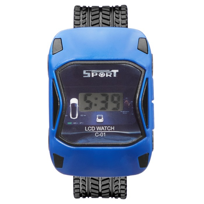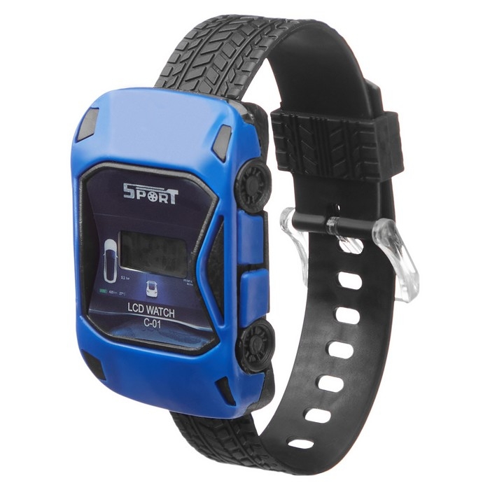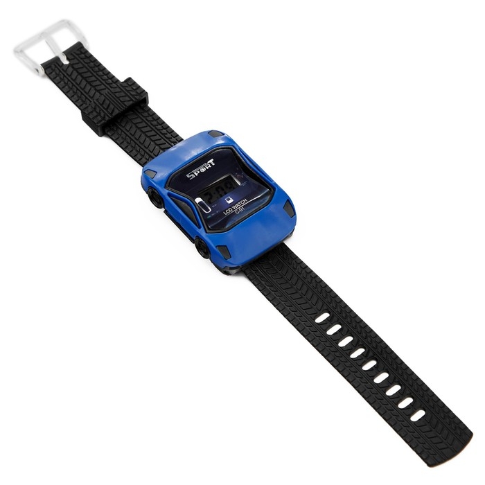 Часы наручные электронные, детские, "Гоночная машинка", ремешок силикон, 22 см, синие