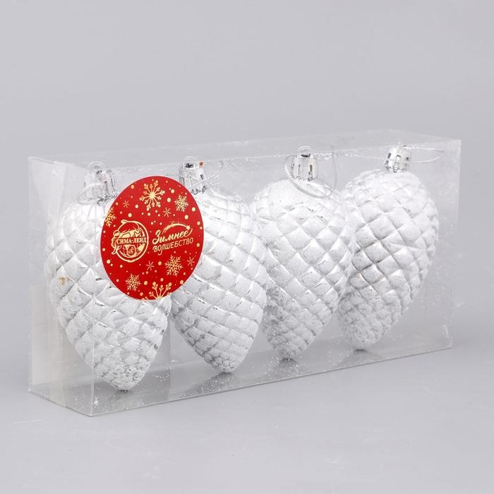 Украшение ёлочное "Снежная шишка" (набор 4 шт) 7х4,5 см, белый