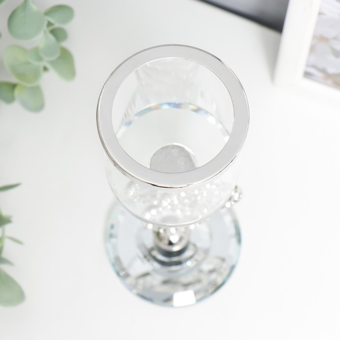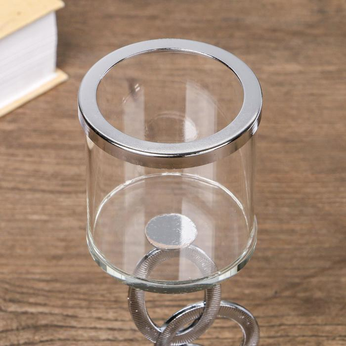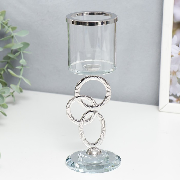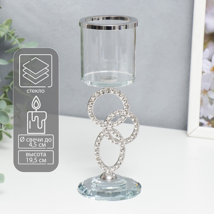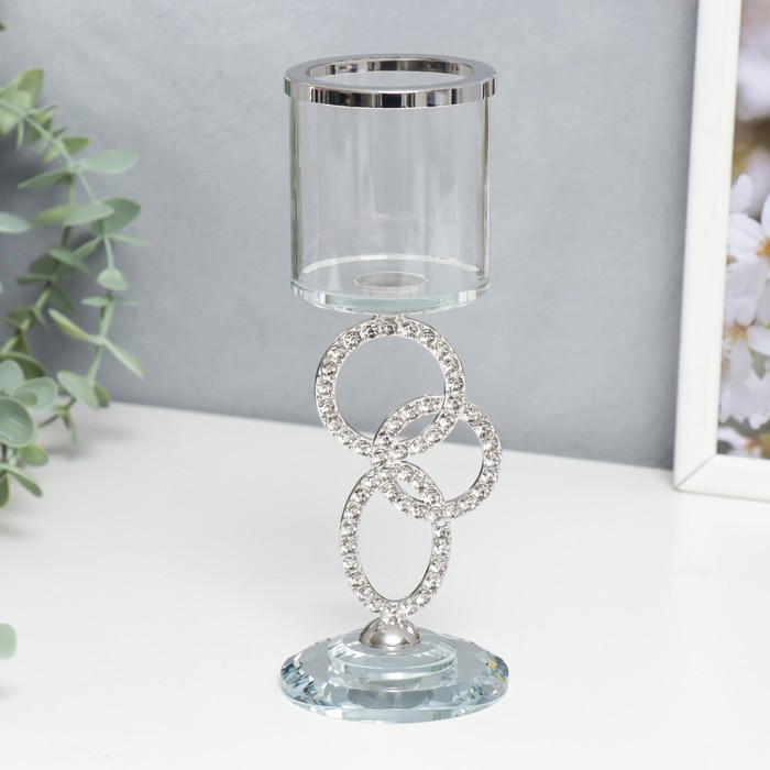 Подсвечник стекло на 1 свечу "Сплетение колец" стразы серебро 19,5х7х7 см