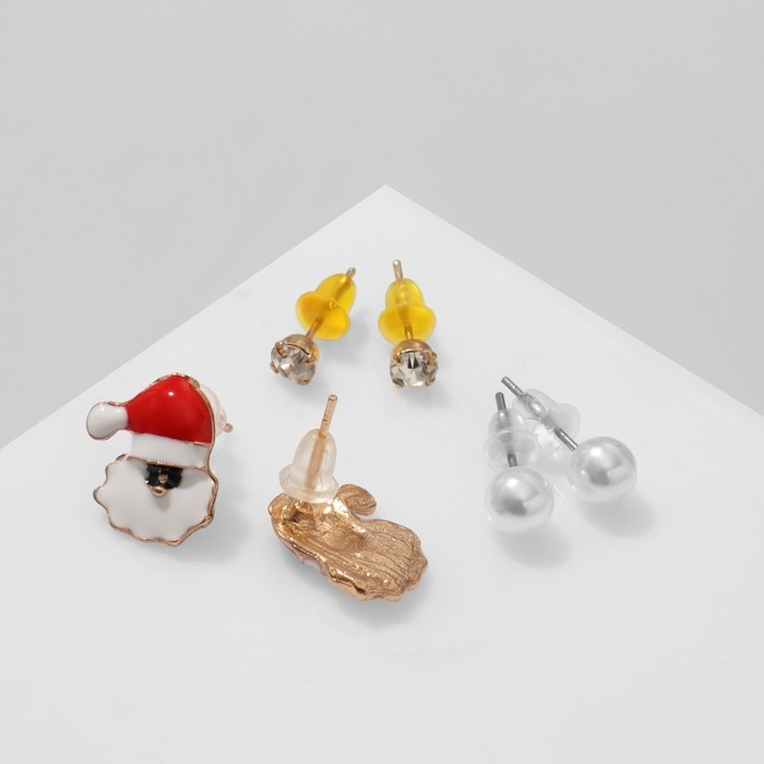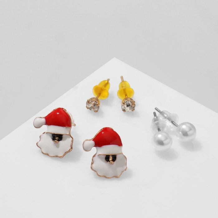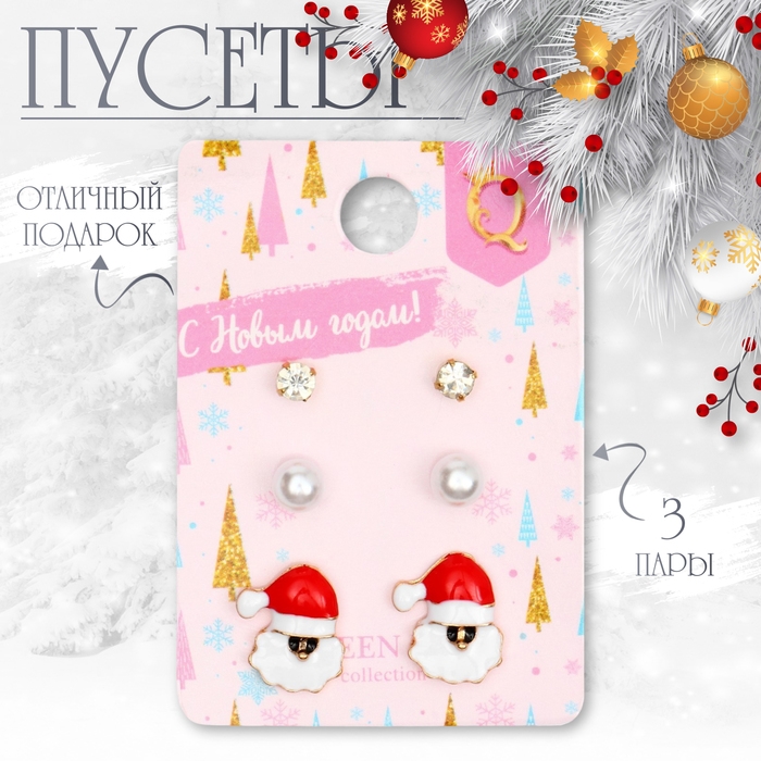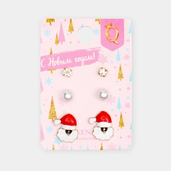 Новый год! Пусеты 3 пары «Ассорти» Дед Мороз, цветные