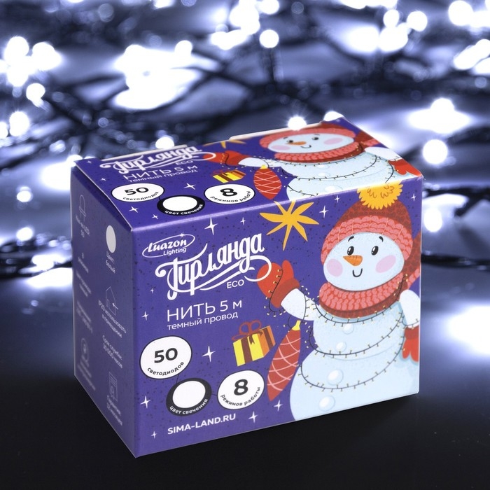 Гирлянда «Нить» 5 м, IP20, тёмная нить, 50 LED, свечение белое, 8 режимов, 220 В