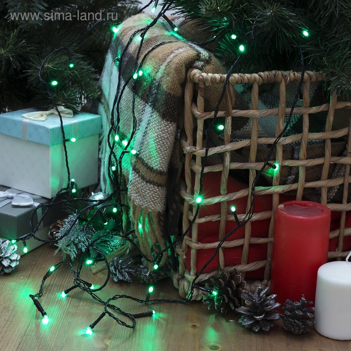 Гирлянда «Нить» 5 м, IP20, тёмная нить, 50 LED, свечение зелёное, 8 режимов, 220 В