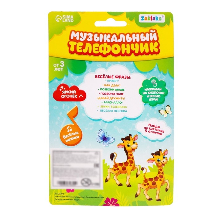 Нажимайте на кнопочки, слушайте забавную мелодию, звуки телефона и весело играйте вместе с малышом.