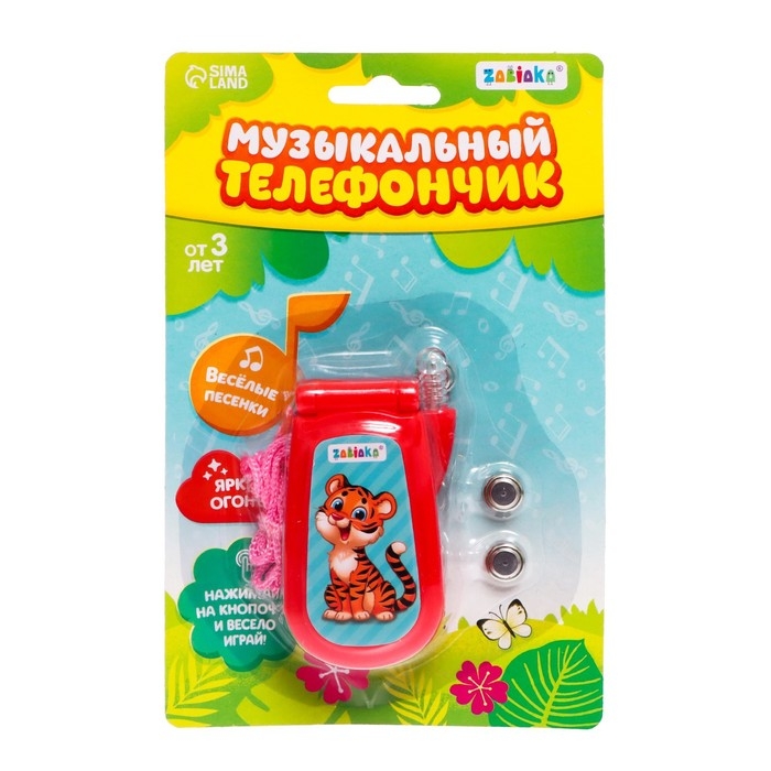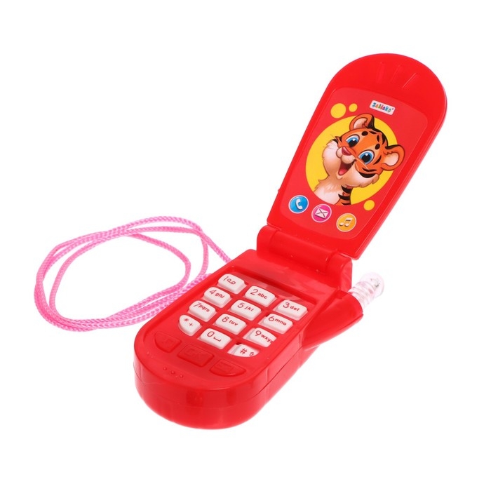 Яркий огонёк и картинки привлекут внимание ребёнка. Телефончик можно носить на шее. Есть верёвочка.