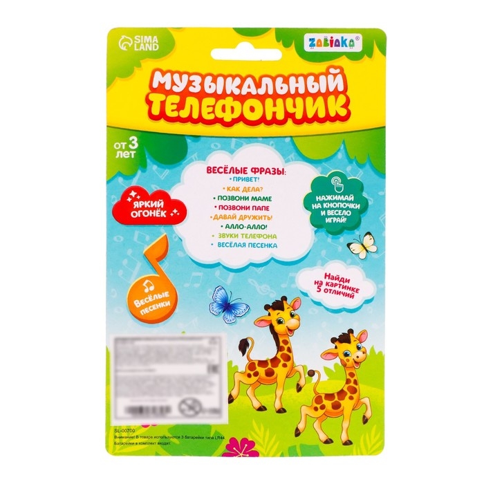 Нажимайте на кнопочки, слушайте забавную мелодию, звуки телефона и весело играйте вместе с малышом.