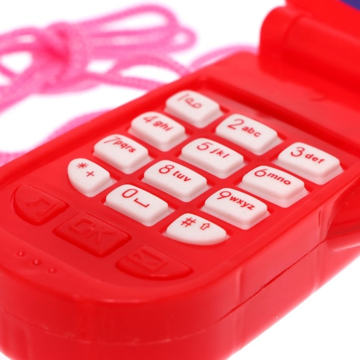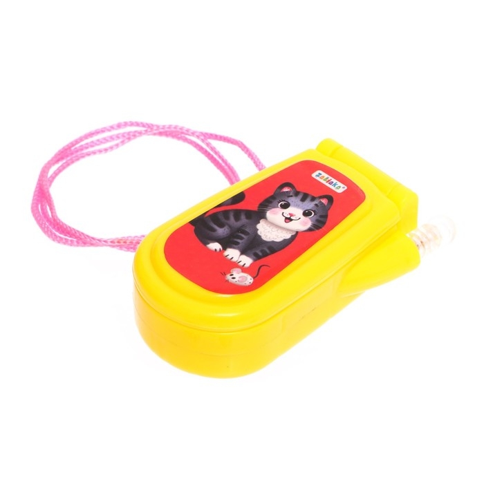 Яркий огонёк и картинки привлекут внимание ребёнка. Телефончик можно носить на шее. Есть верёвочка.