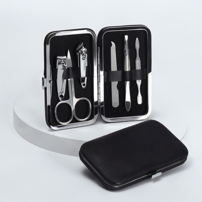 Набор маникюрный, 6 предметов, в футляре, цвет чёрный