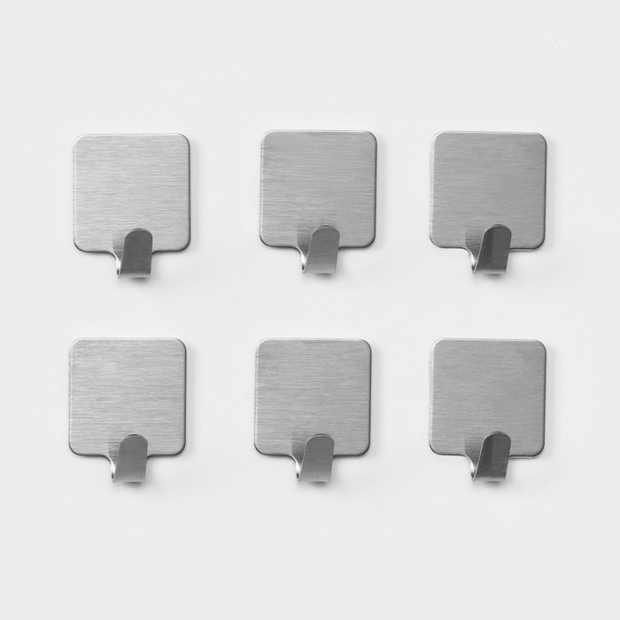 Крючки самоклеящиеся SAVANNA «Квадрат», 6 шт, металл, 2,6×2,2×1,5 см