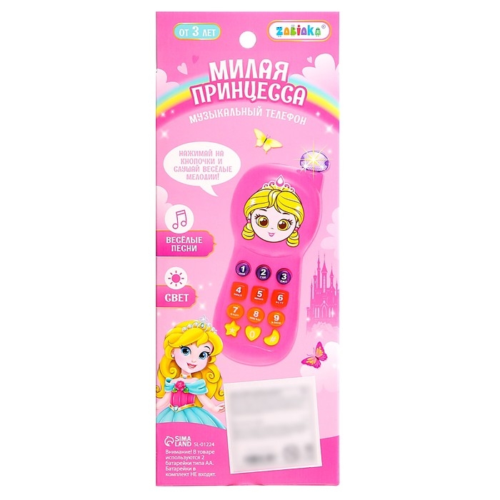 Телефончик музыкальный «Маленькая принцесса», световые эффекты, русская озвучка, работает от батареек