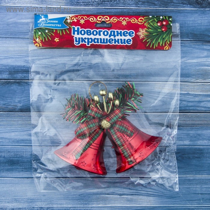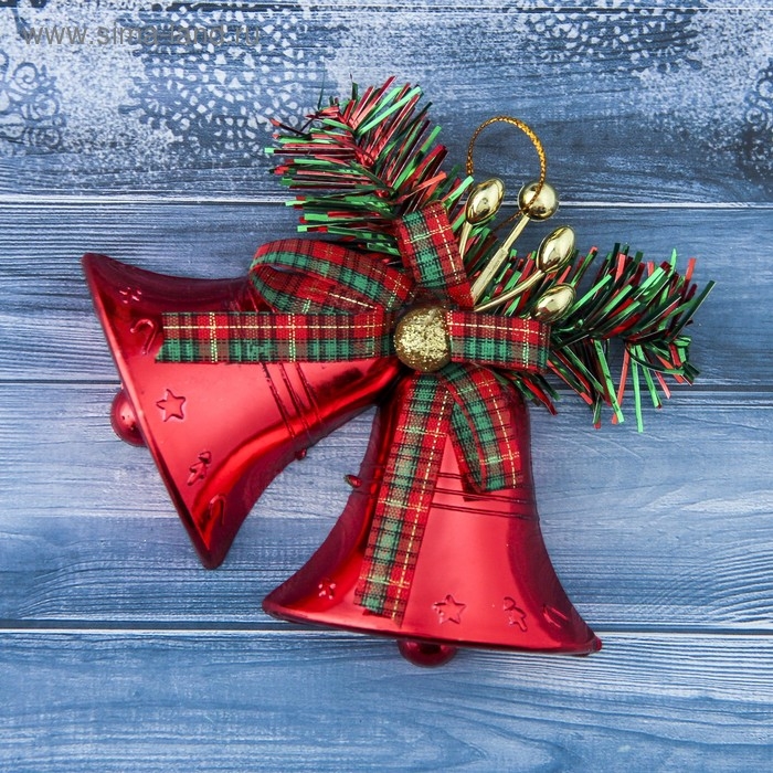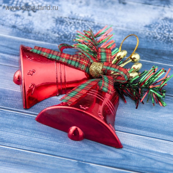 Украшение ёлочное "Колокольчик двойной с бантиком в клетку" 13х10 см, красный