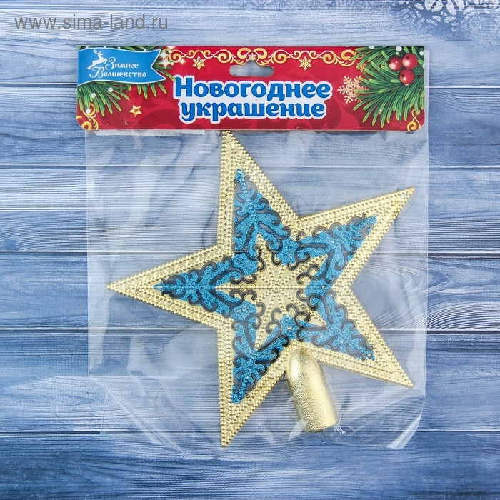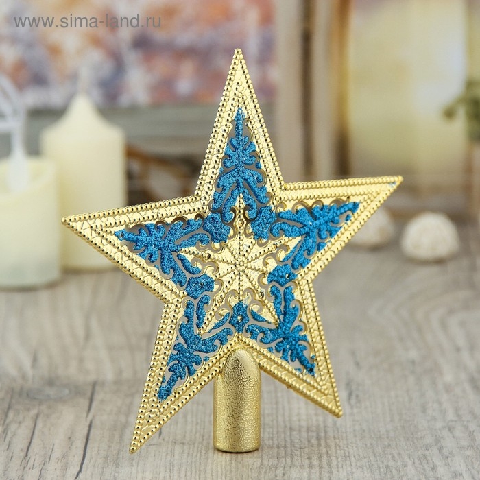 Наконечник "Звезда" кружевной узор, 15х14,5 см, золотисто-синий