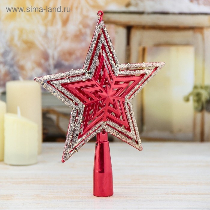 Наконечник "Звезда" блёстки, 15х18,5 см, красный