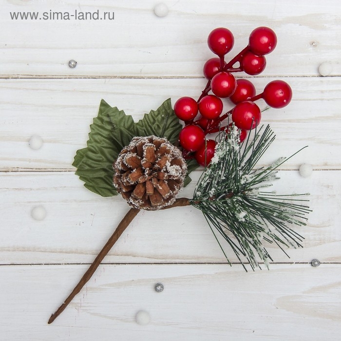 Декор "Зимние мечты" ягодки и шишка, 20 см
