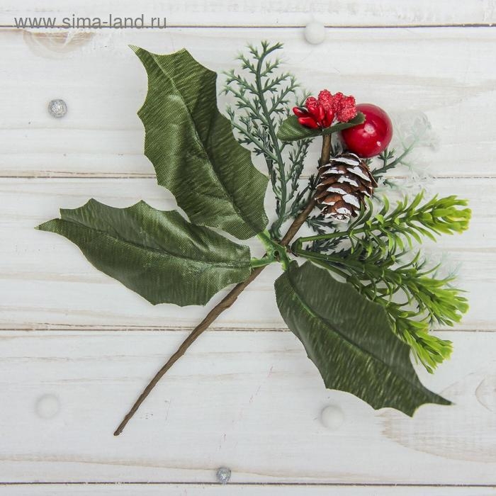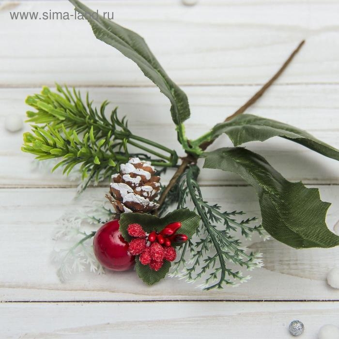 Декор "Зимние мечты" веточка с ягодой и шишкой, 14 см