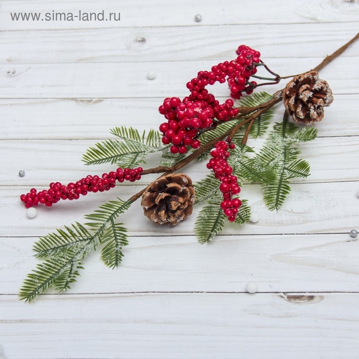 Декор "Зимние мечты" веточка с шишками и ягодами, 50 см