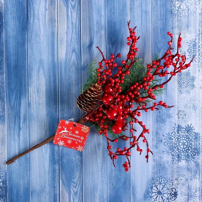 Декор "Зимние мечты" ягодная веточка с шишкой, 30 см