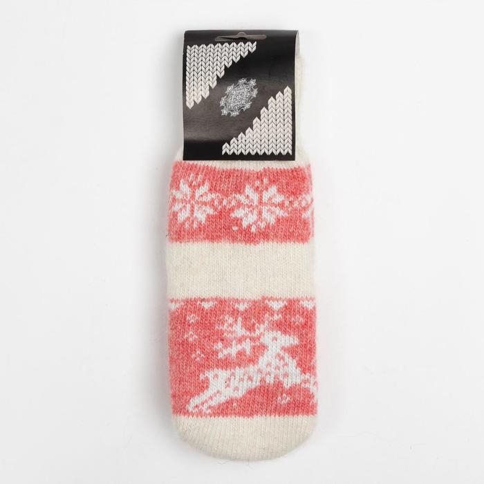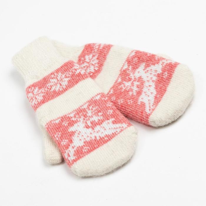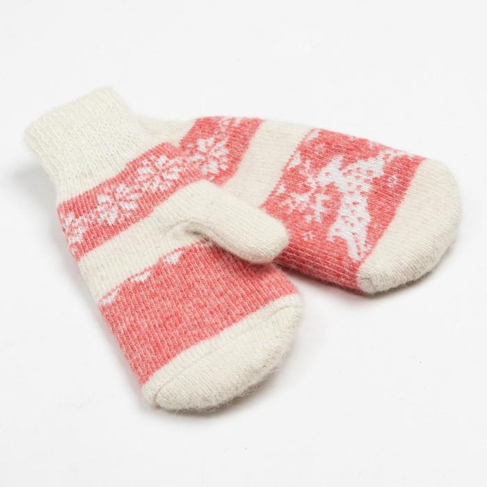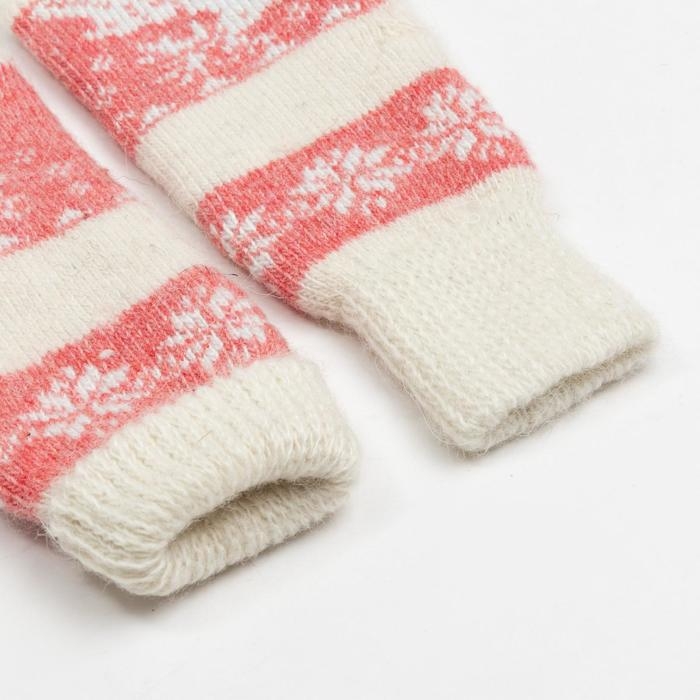 Новый год. Варежки женские шерстяные, цвет белый/красный, размер 20-22