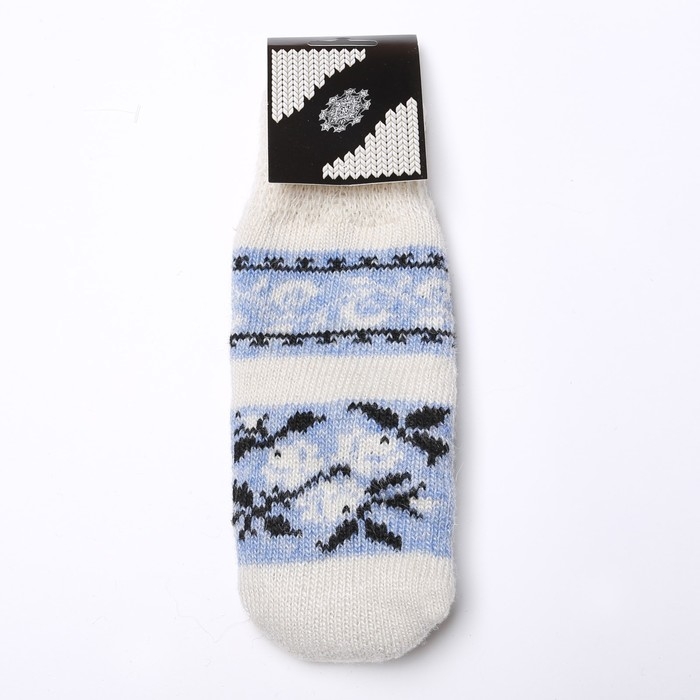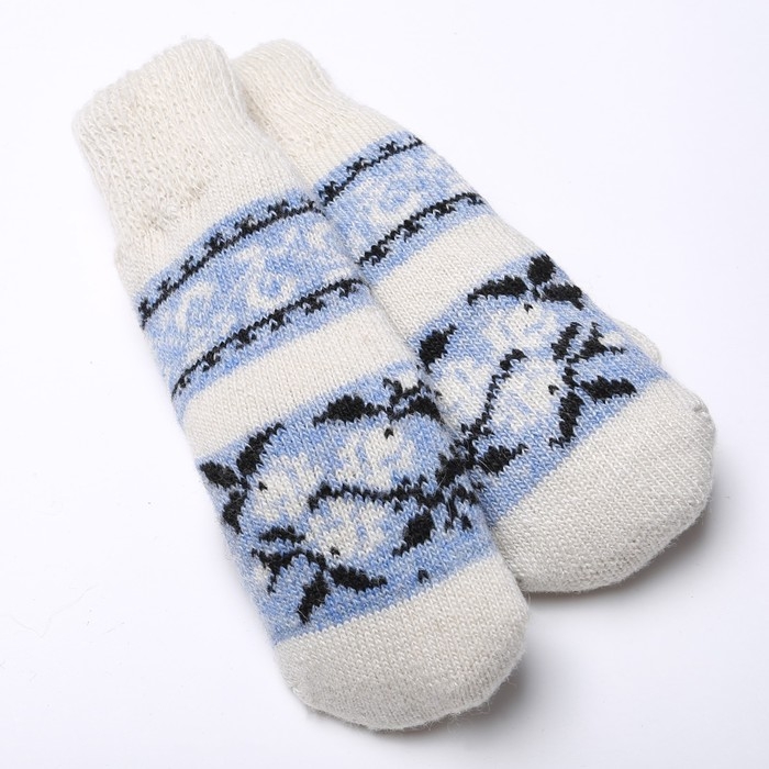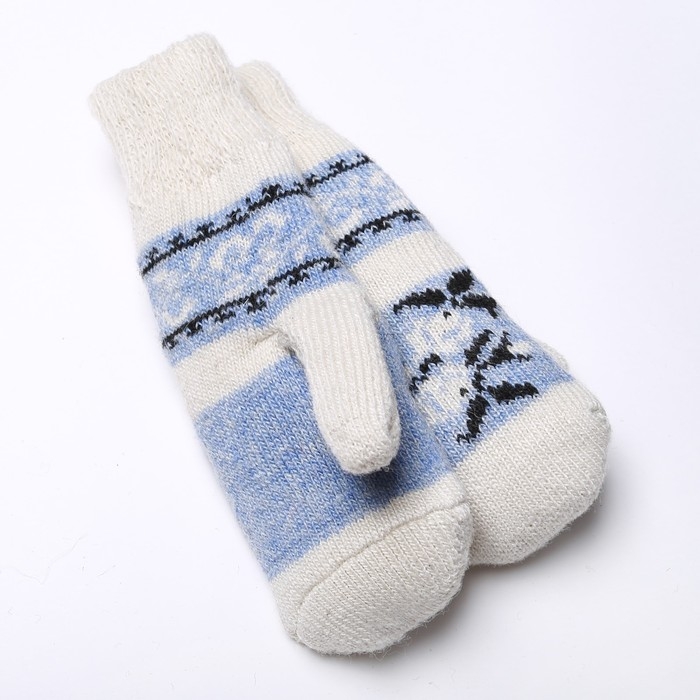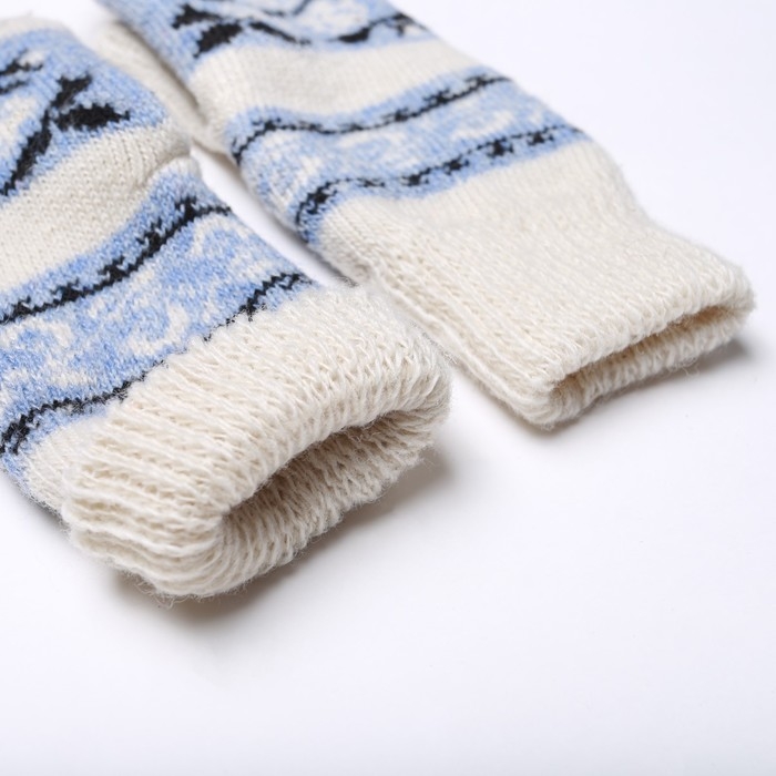 Варежки женские шерстяные «Весна», цвет белый/голубой, размер 20-22