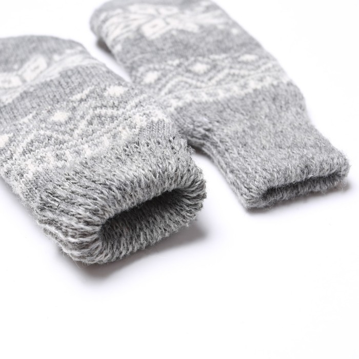 Новый год. Варежки женские шерстяные «Снежинка», цвет светло-серый, размер 20-22