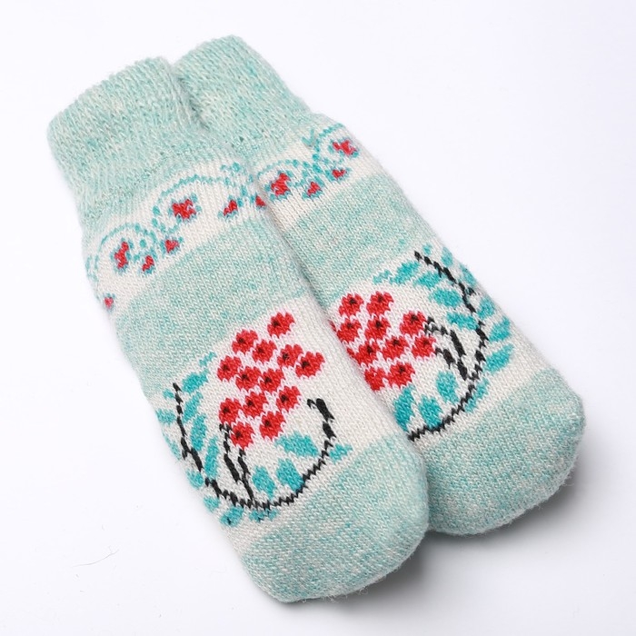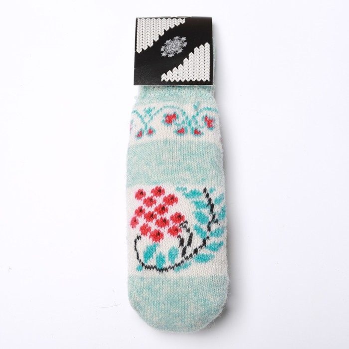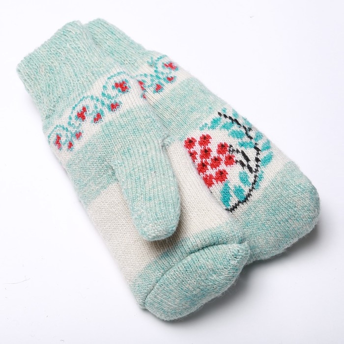 Варежки женские шерстяные «Рябинка», цвет голубой, размер 20-22