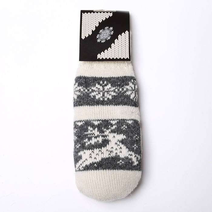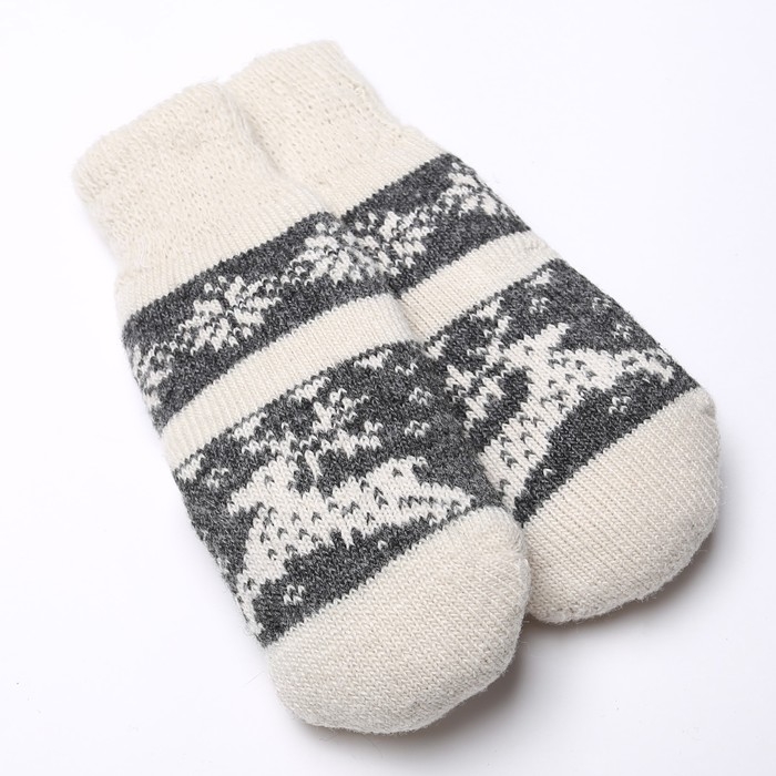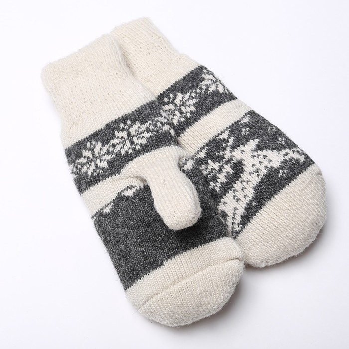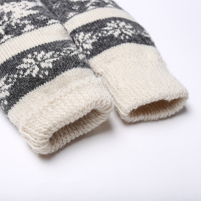 Новый год. Варежки женские шерстяные, цвет белый/серый, размер 20-22
