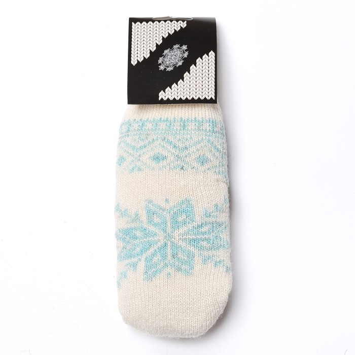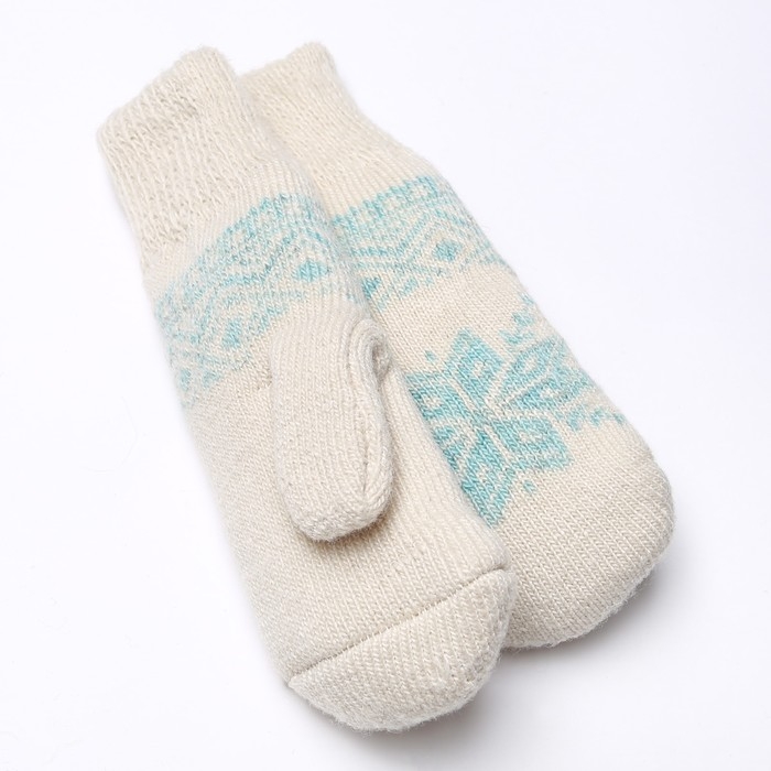 Новый год. Варежки женские шерстяные «Снежинка», цвет белый, размер 20-22