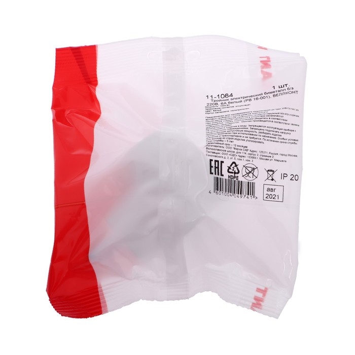 Тройник электрический REXANT, 6 А, без з/к, биметалл, белый