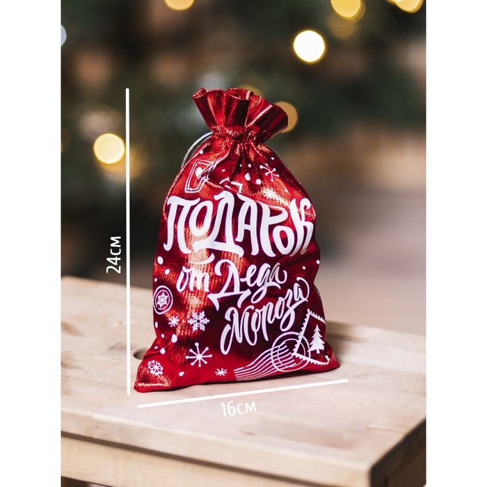 Мешочек подарочный парча «Подарок от Деда Мороза», 16 х 24 см +/- 1.5 см, Новый год