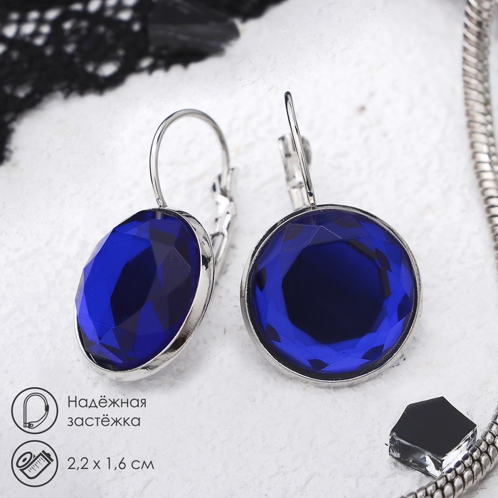 Серьги со стразами «Яркая классика» в обрамлении, цвет тёмно-синий в серебре, d=1,6 см