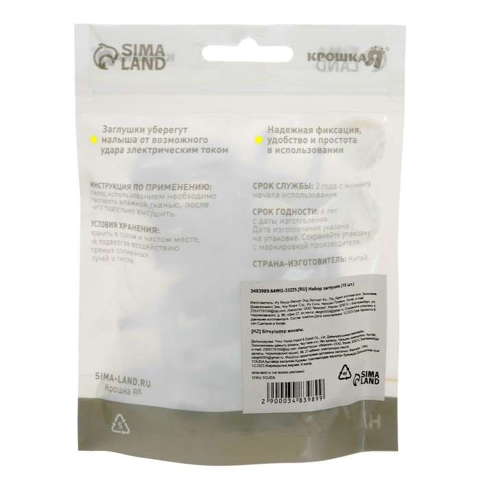 Заглушка для розетки, цвет белый, набор 15 шт., Крошка Я