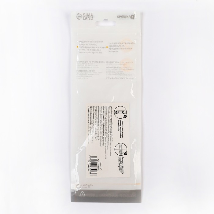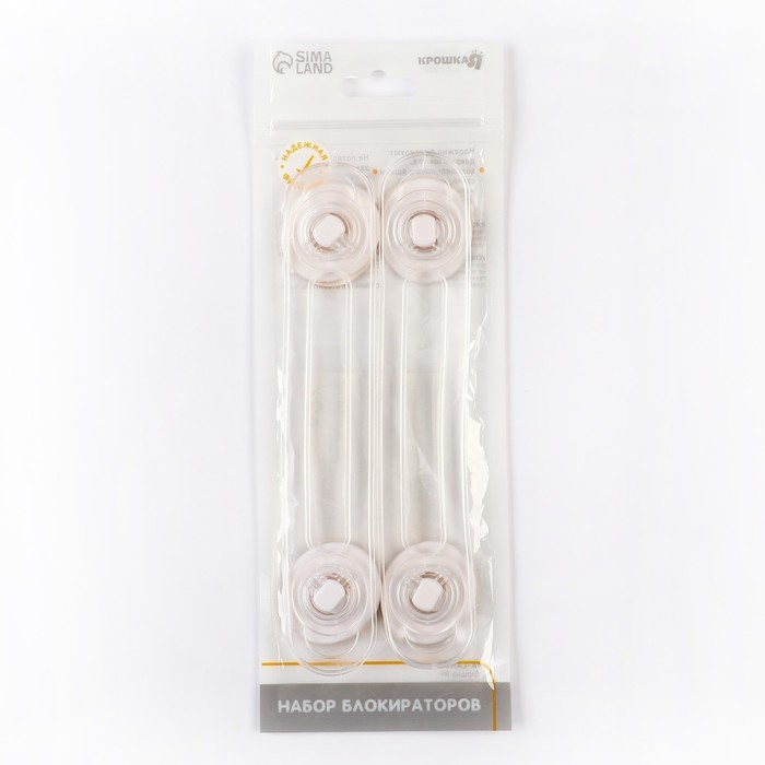Набор блокираторов для дверей и ящиков, гибкий, силиконовый,17 см, 2 шт., цвет прозрачный/белый, Крошка Я