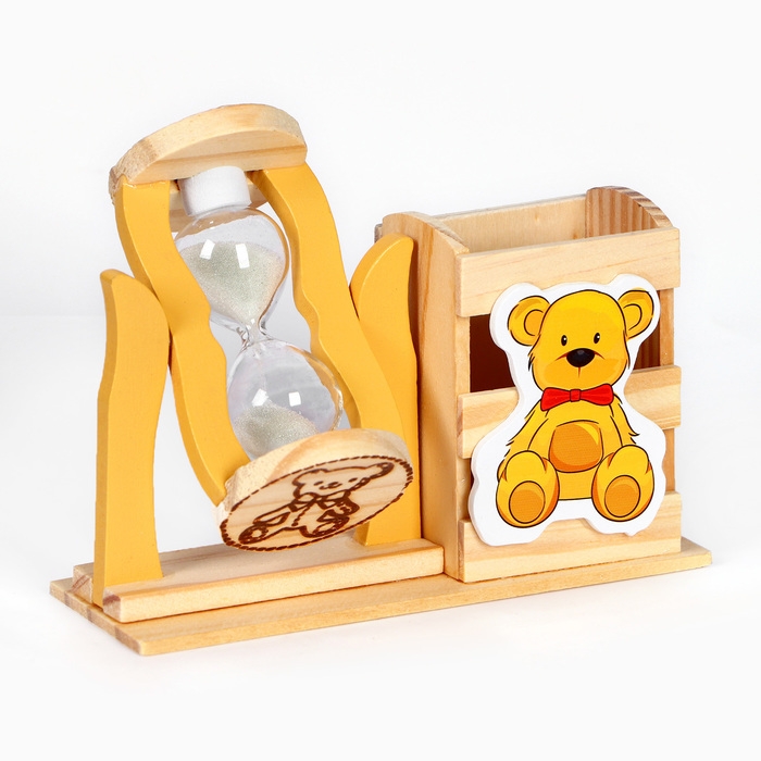 Песочные часы "Медвежонок", с органайзером для канцелярии, 13.5 х 13.5 х 10 см