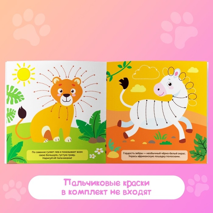 Книга «Рисуем пальчиками» имеет удобный формат для малыша, дополнена красочными картинками и интересными заданиями.