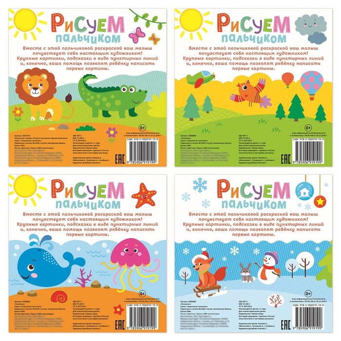 Раскраски набор «Рисуем пальчиками с подсказками», 4 шт. по 16 стр.