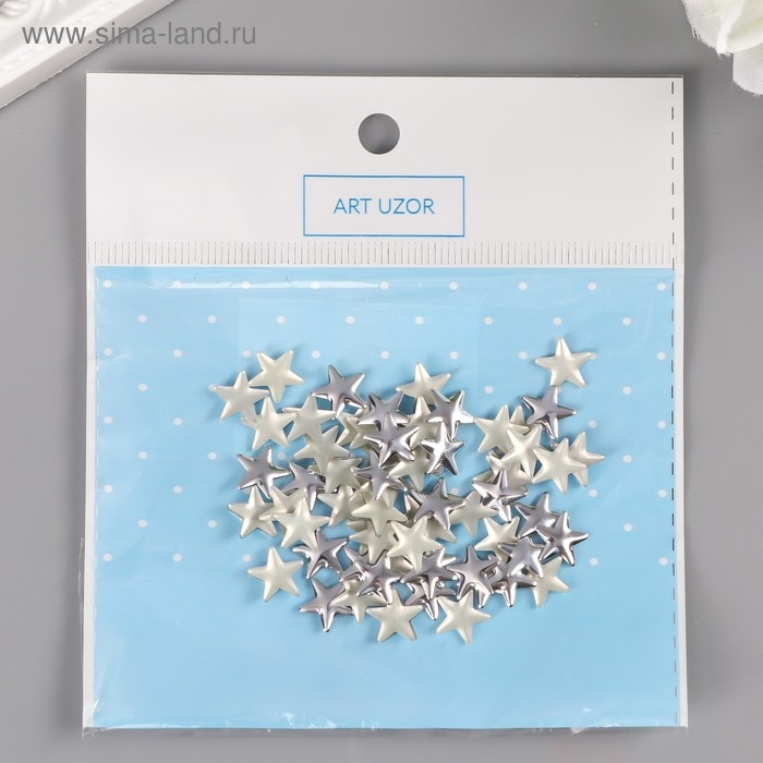Декор для творчества металл "Звёзды" серебро набор 50 шт 1х1 см