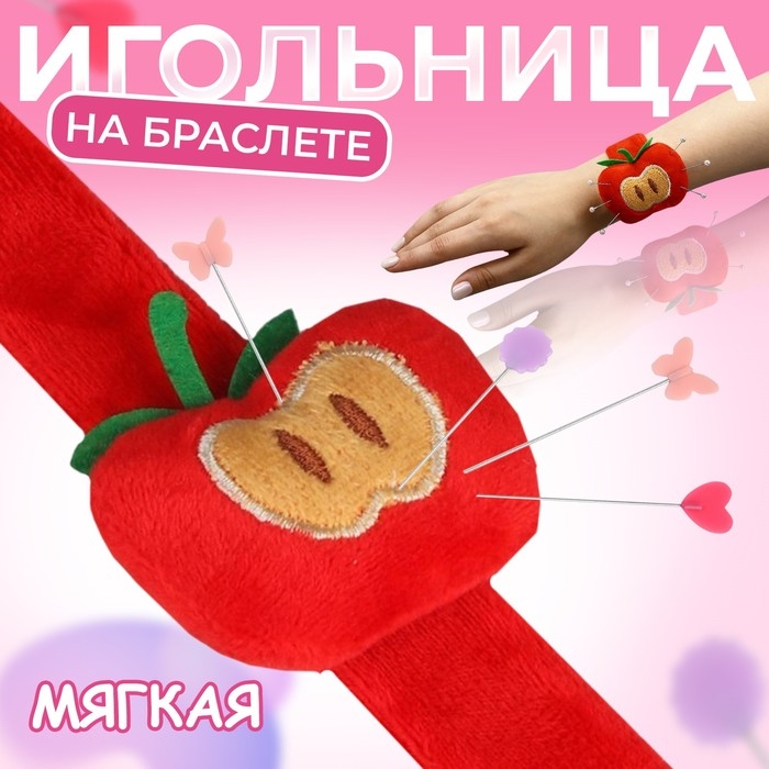 Игольница на браслете «Яблоко», 23 × 6,5 см, цвет красный