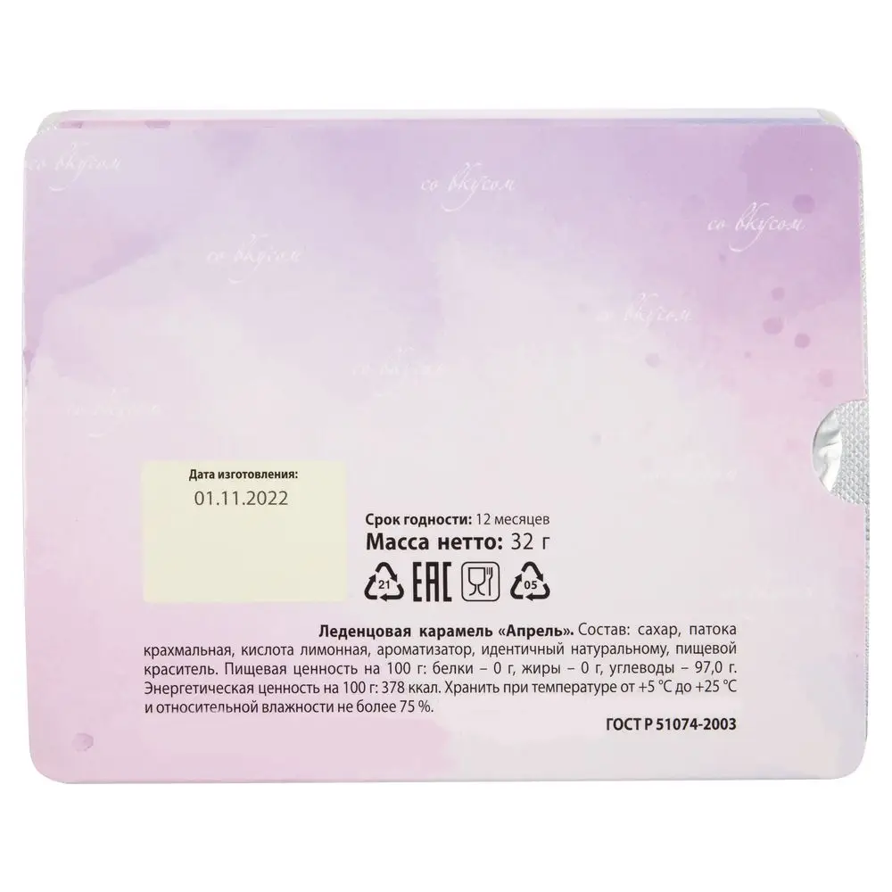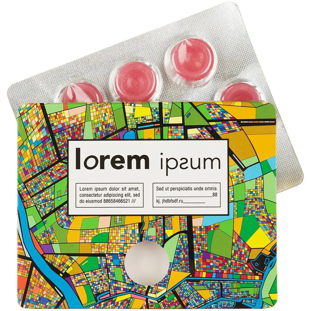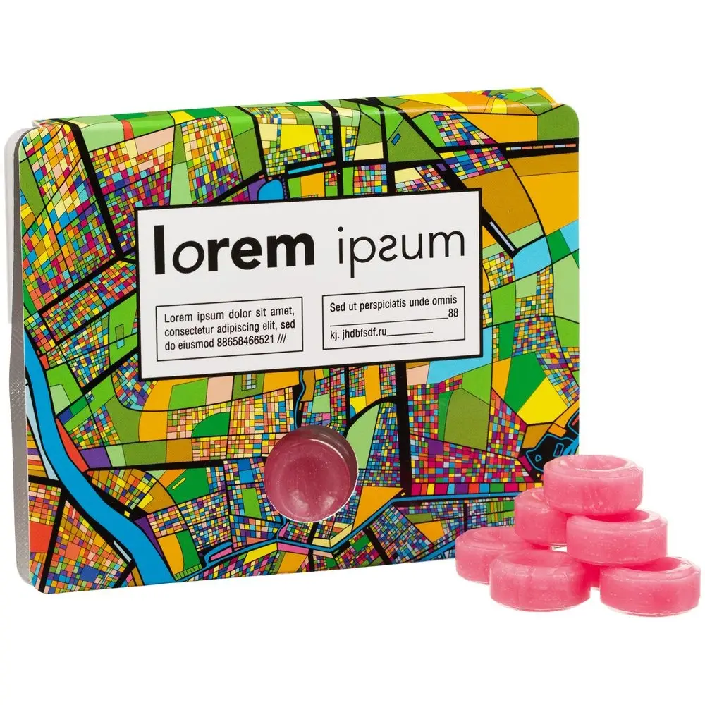 В стоимость изделия входит полноцветная печать и офсетный лак на шубере.Леденцы со вкусом на выбор, 10 шт. по 3,2 г.