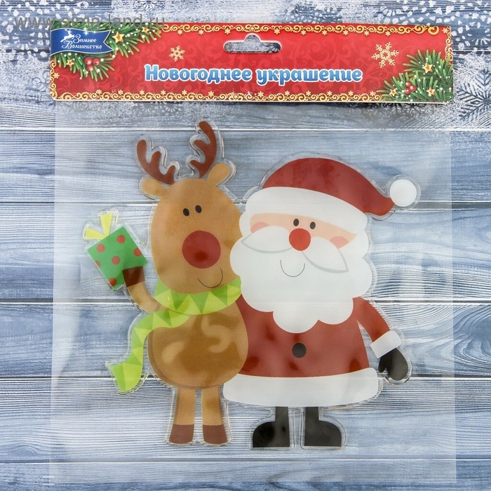 Наклейка на стекло "Дед Мороз с оленем" 16,5х16,5 см