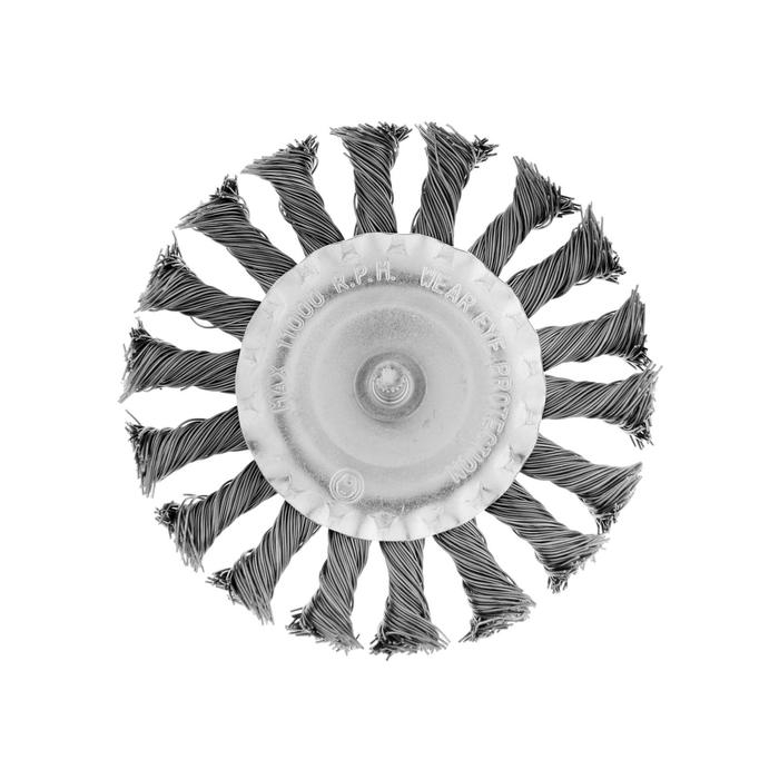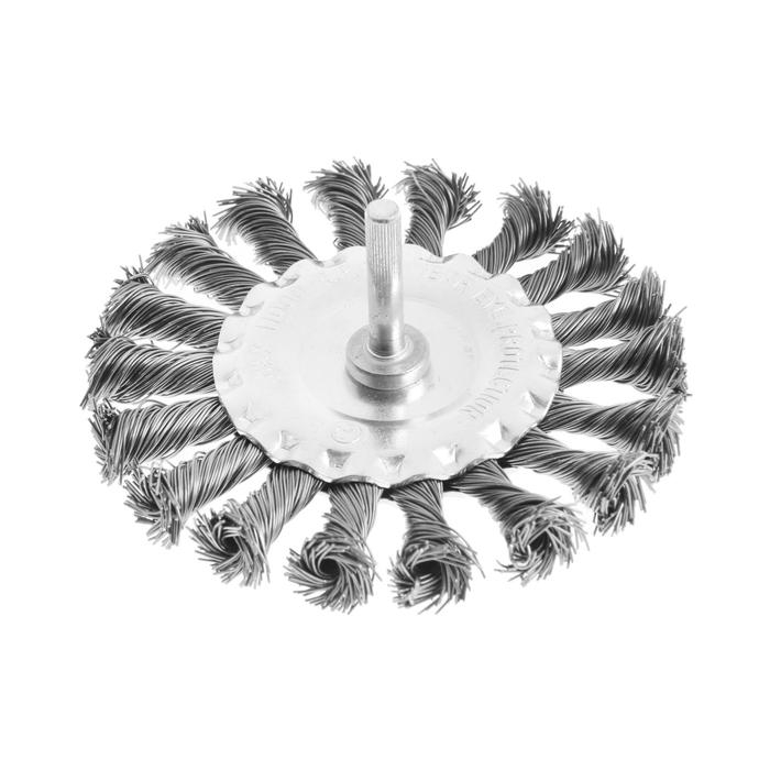 Щетка металлическая для дрели ТУНДРА, со шпилькой, крученая проволока, плоская, 100 мм