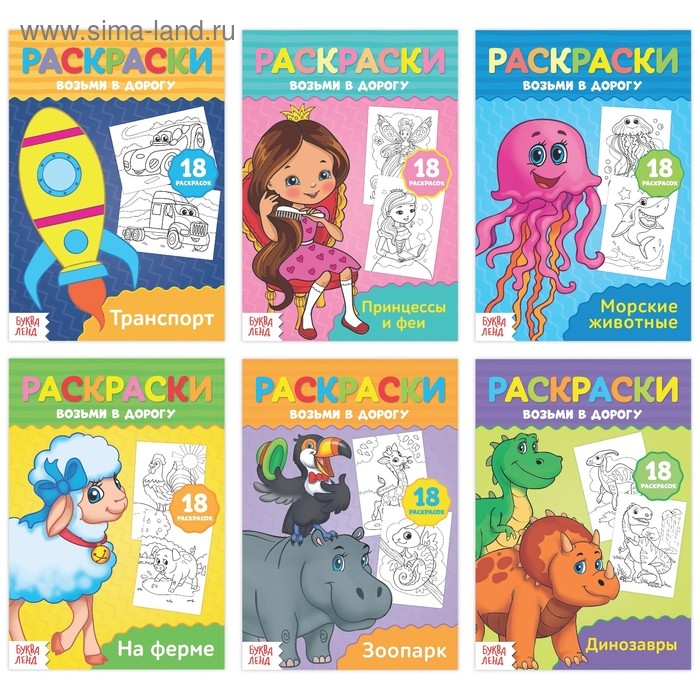 Раскраски в дорогу, набор, 6 шт. по 20 стр.
