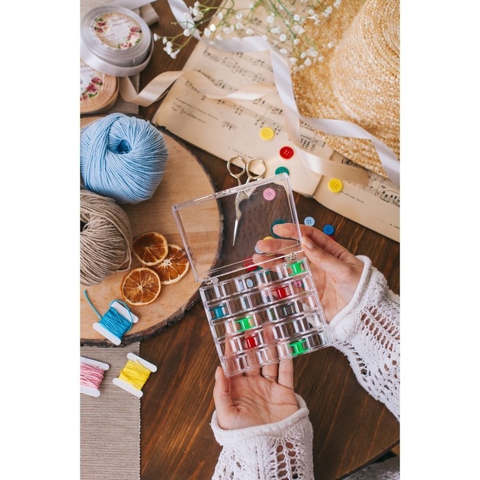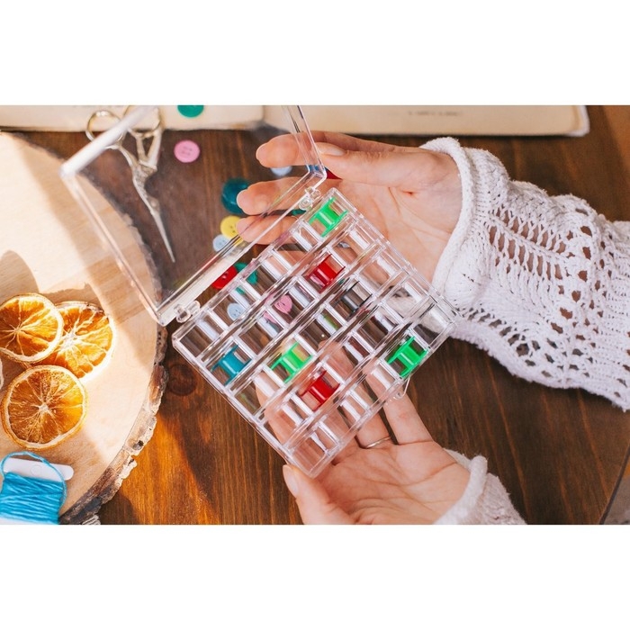 Органайзер для ниток, на 25 шпулек, 12,3 × 10 × 2,5 см, цвет прозрачный