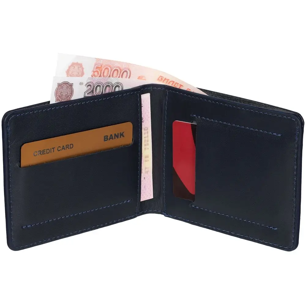 Рельефное изображение логотипа, выполненное методом конгревного тиснения, подчеркнет статус владельца и станет своеобразной печатью качества, подтверждающей изысканность и особенность изделия.- Отделение для купюр