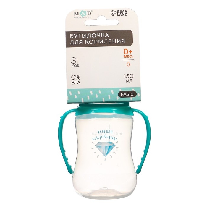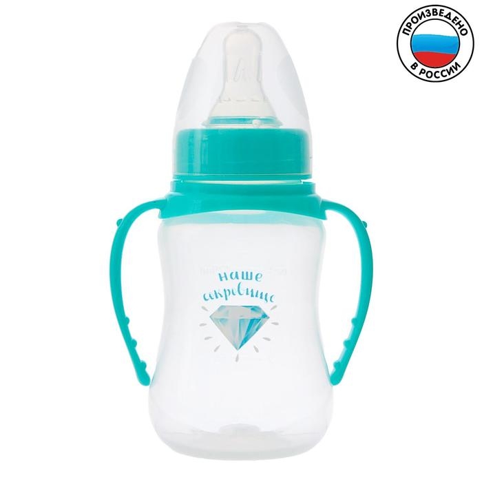 Бутылочка для кормления «Наше сокровище», классическое горло, приталенная, с ручками, 150 мл., от 0 мес., цвет бирюзовый