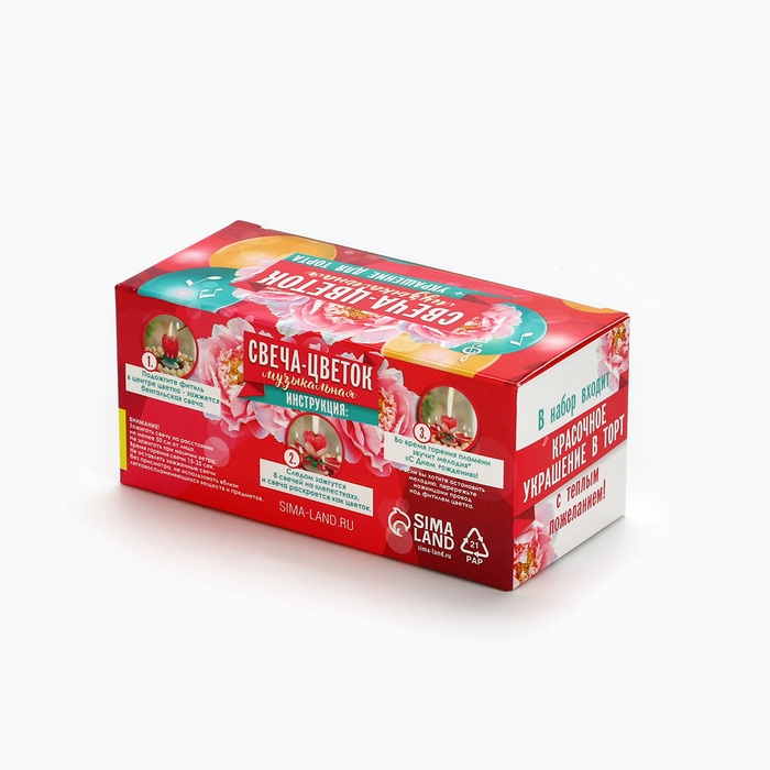 Больше всех именинный торт любят дети: ждут с нетерпением дня рождения, чтобы загадать заветное желание, задуть свечи и ожидать его исполнения. Подарите ребенку незабываемый вечер, украсьте торт к его именинам необычным музыкальным цветком.Используя специальную палочку (входит в комплект), зажгите свечу-бенгальский огонь. Пока горит бенгальская свеча - бутон цветка раскрывает свои лепестки - на каждом из которых зажигается маленькая свечка - цветок начинает играть музыку "с днем рожденья" (при этом цветок не крутится).Цветок изготовлен из специальной пищевой пластмассы, фонтан фейерверка представляет собой холодный пиротехнический огонь, как у бенгальских свечей.Принцип действия: при поджигании сгорает изоляция на проволоке, вследствие чего цепь замыкается. Для остановки мелодии разъедините проволоку. Итог:смотрится эффектно, красиво, необычно.