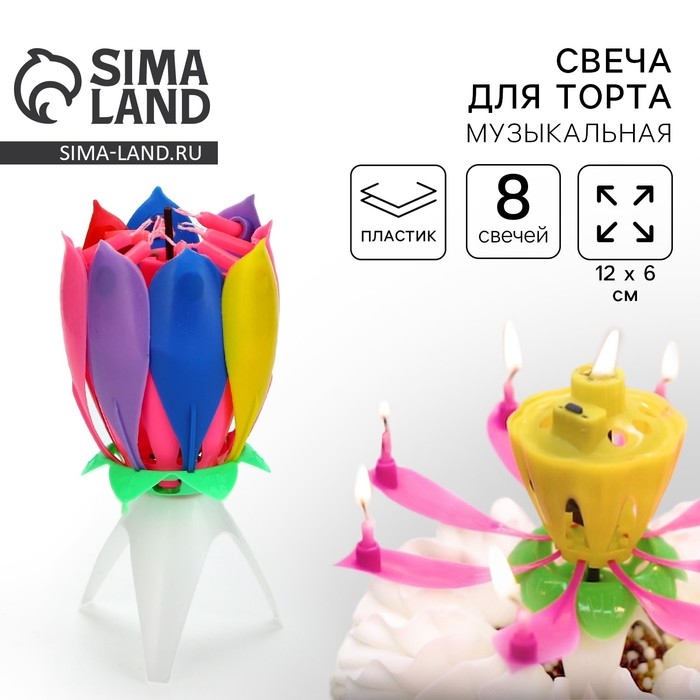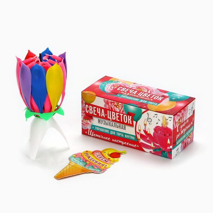 Свеча для торта музыкальная «Тюльпан», разноцветная