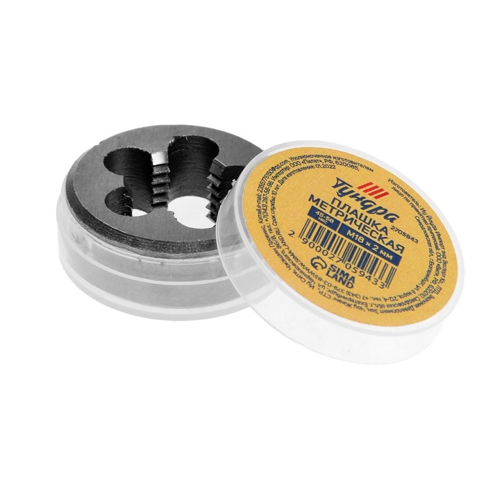 Плашка метрическая ТУНДРА, М18 х 2 мм