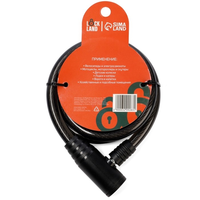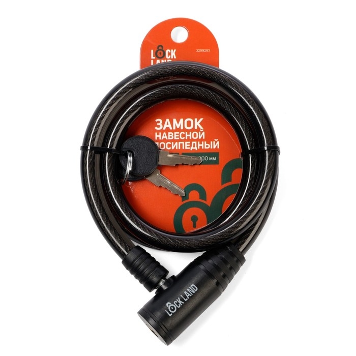 Замок навесной велосипедный LOCKLAND, 12х1000 мм, английский ключ с пластиковой ручкой