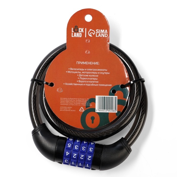 Замок навесной велосипедный LOCKLAND, кодовый, 8х800 мм