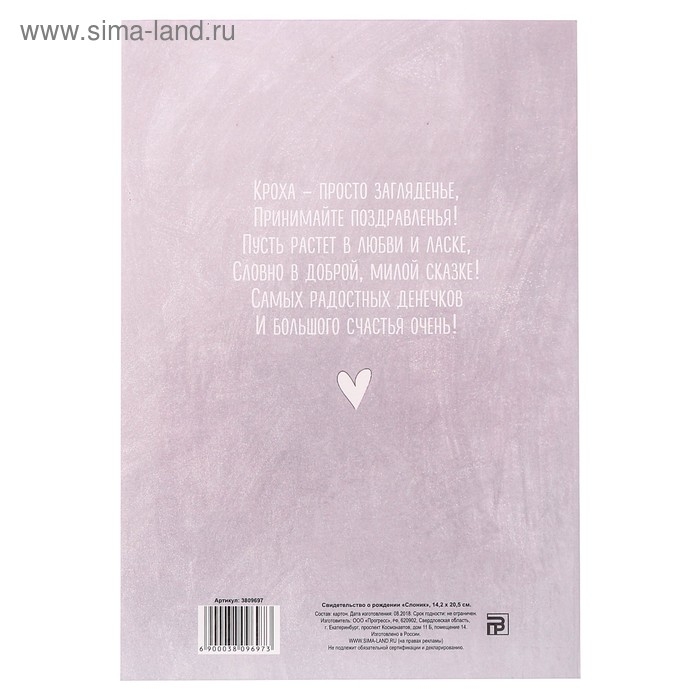 Папка для свидетельства о рождении «Слоник», А5